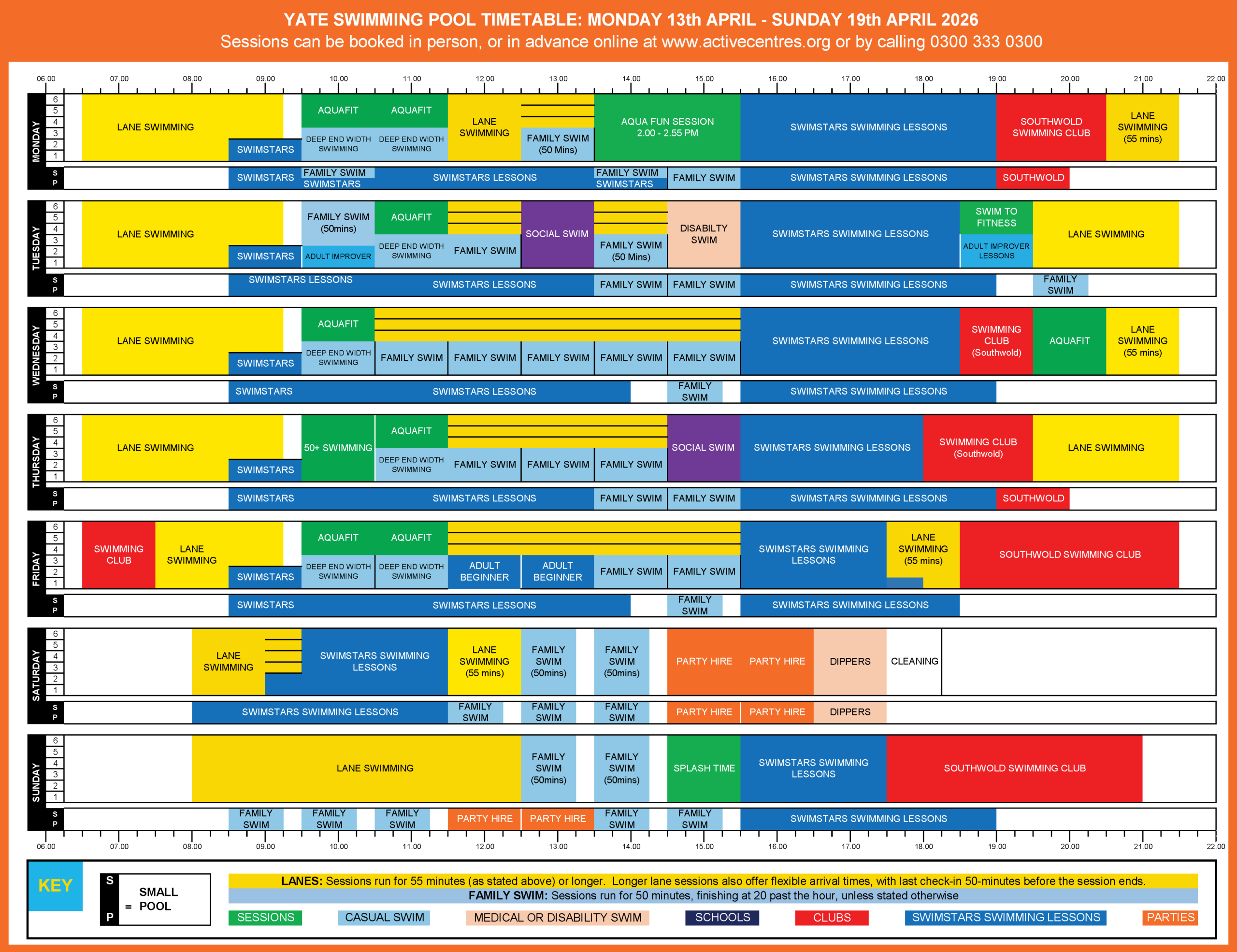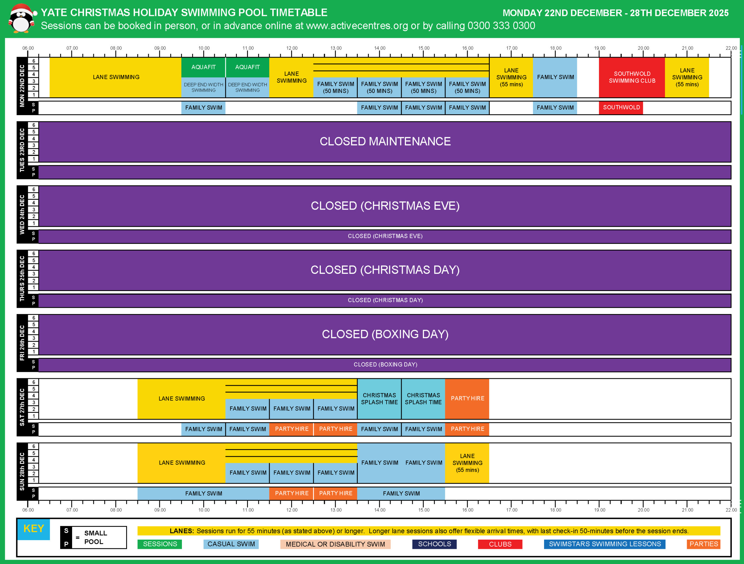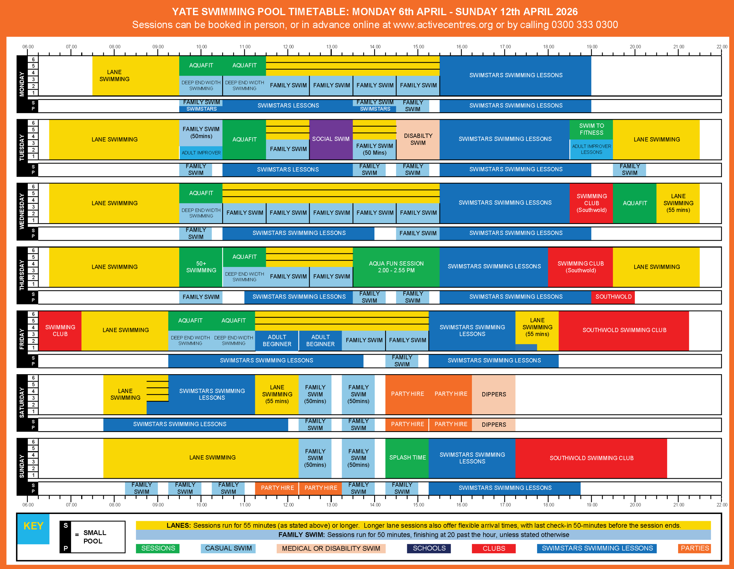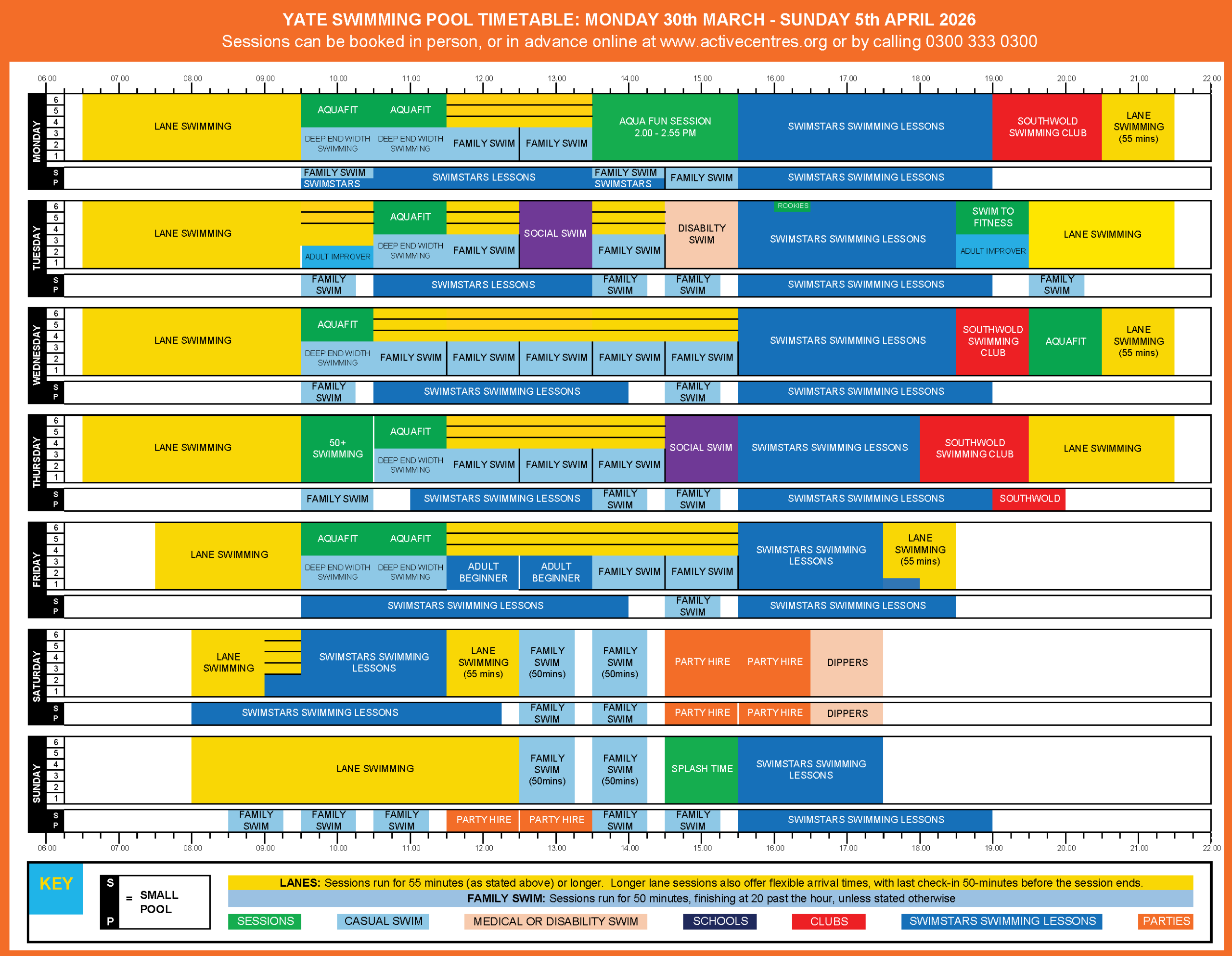 | Tues | 6.00am | 9.30pm |